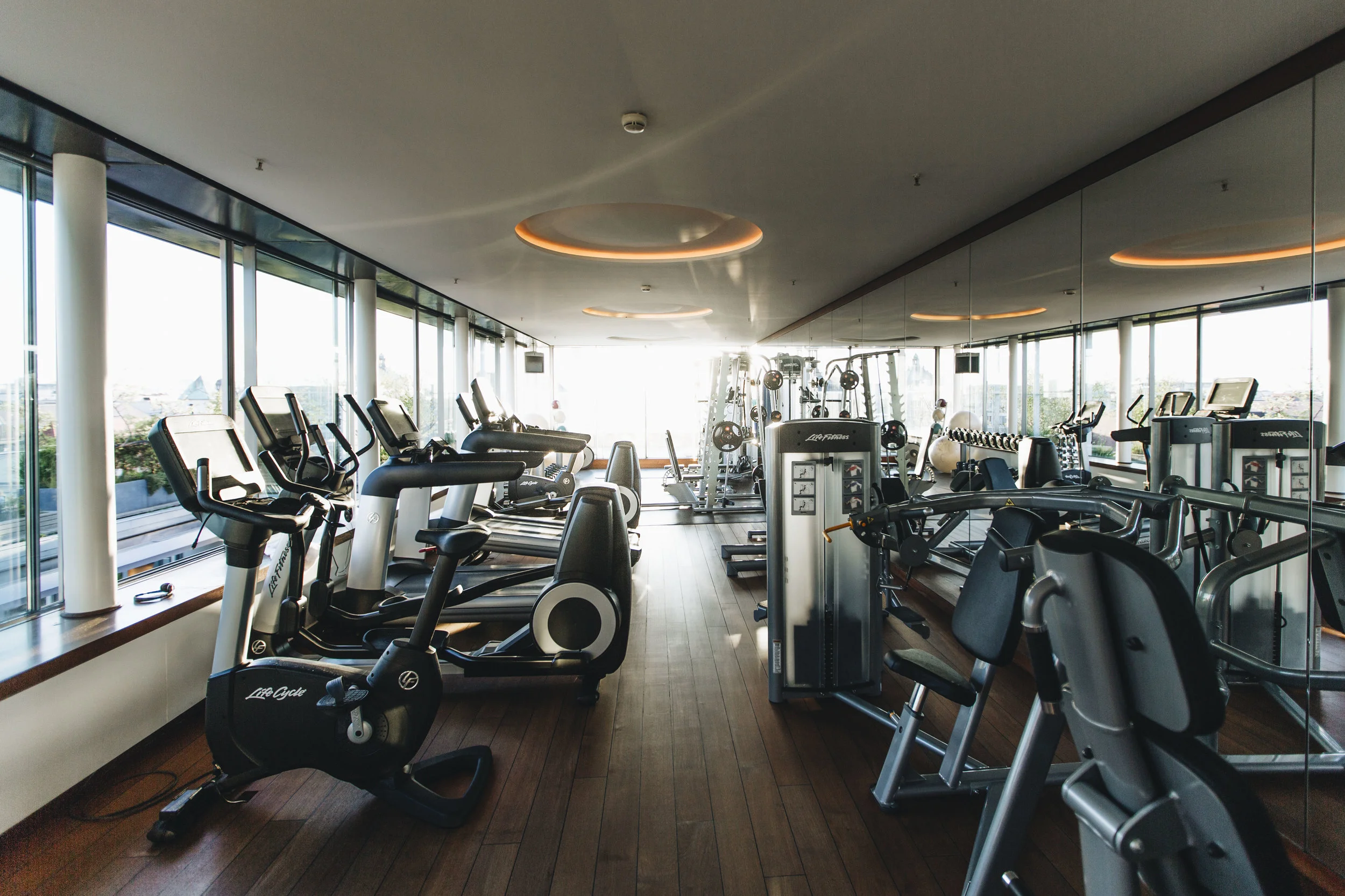 We always try to fit a workout in when we have the chance, and the rooftop gym with city views made us feel less guilty about not being out in the city yet!