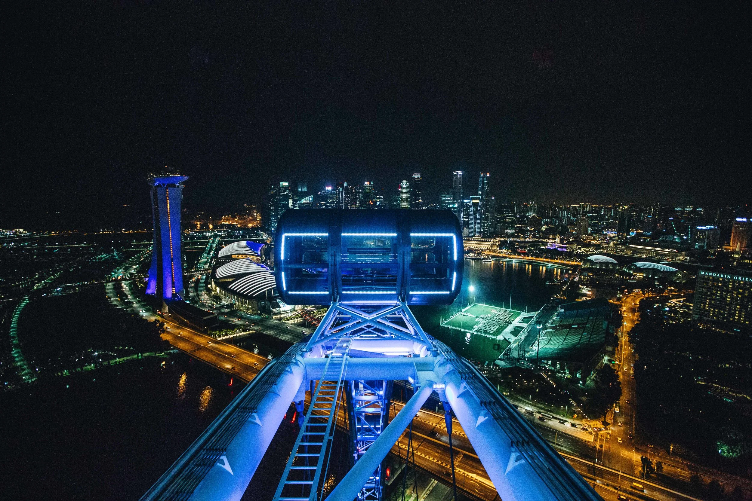 If you're looking for an epic view of Singapore, take a ride on the city's mega-ferris wheel, the Singapore Flyer. It stretches a whopping 541 feet into the sky, and includes 28 air-conditioned capsules- each able to accommodate 28 passengers.